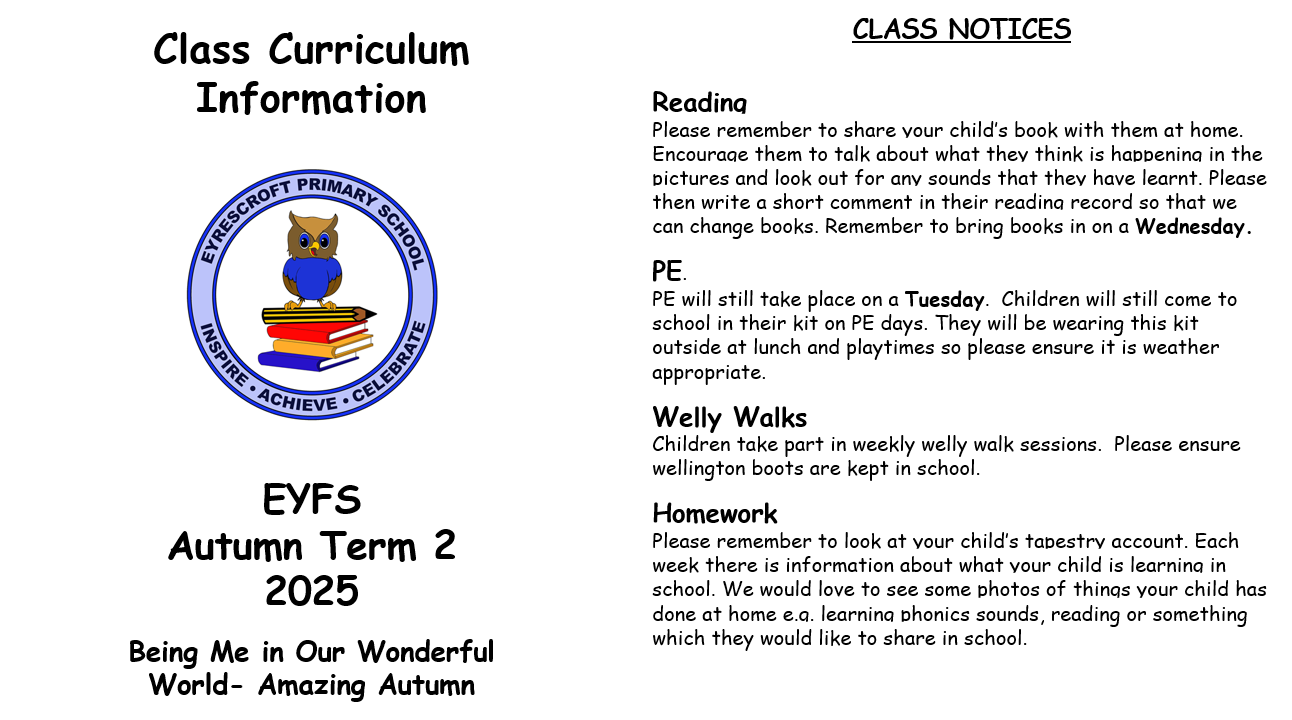 Please click on the links below to download the class curriculum half term information sheets: